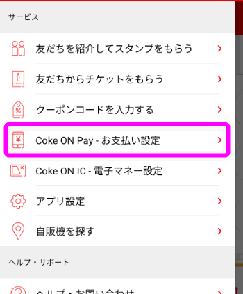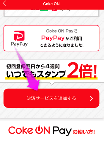 「Coke ON Pay」の画面が表示されるので下にスクロールします。