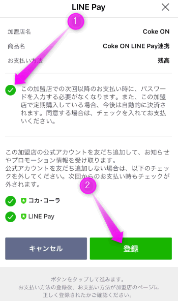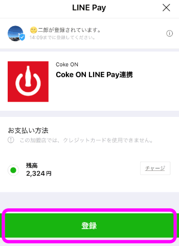 再びLINEが立ち上がり、Coke ON Payと連携するか確認してくるので、「登録」をタップします。