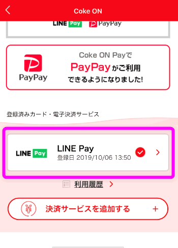 「登録済みカード・電子決済サービス」に「LINE Pay」が加わりました。