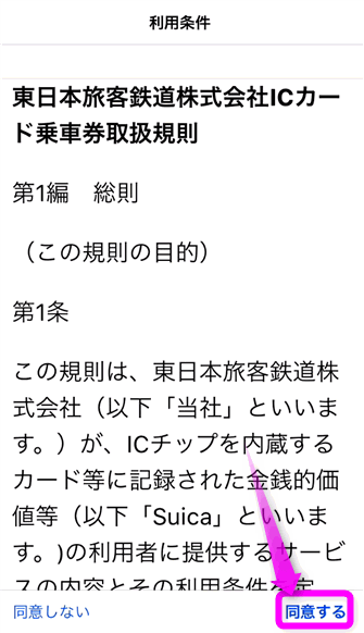 「利用条件」が表示されるので、目を通したら右下の「同意する」をタップします。