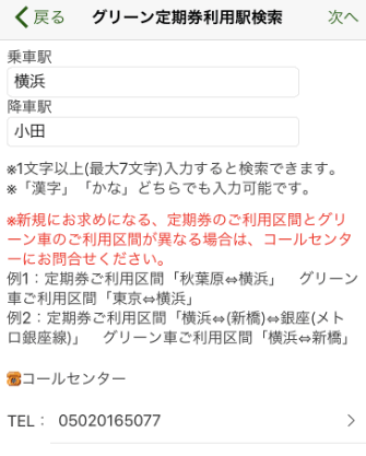 グリーン定期券の場合
