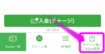 「Suicaアプリ」を起動したら、右下にある「チケット購入 Suica管理」をタップします。
