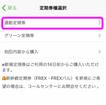 「通勤定期券」をタップします。
