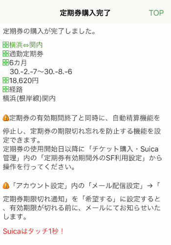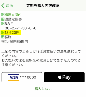 あとは定期券の購入と同じ手順です。
