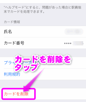 一番下にある「カードを削除」をタップします。