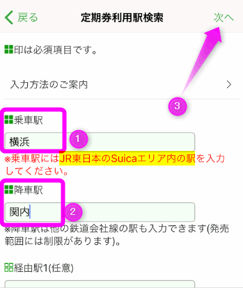 乗車駅と降車駅を入力します。