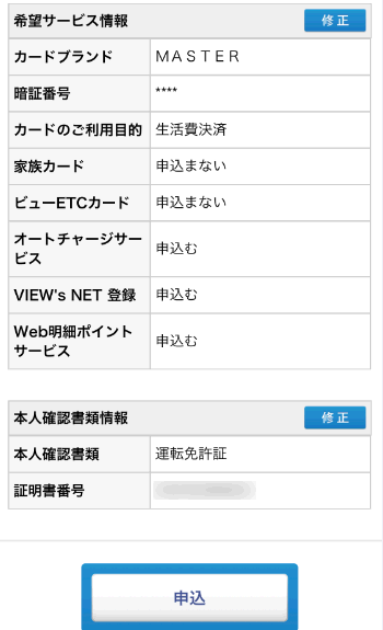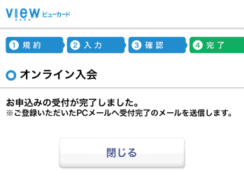 オンラインでのViewカードの申込みが終了しました。
