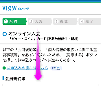Viewカード公式サイトを開き、「入会申込」をタップします。