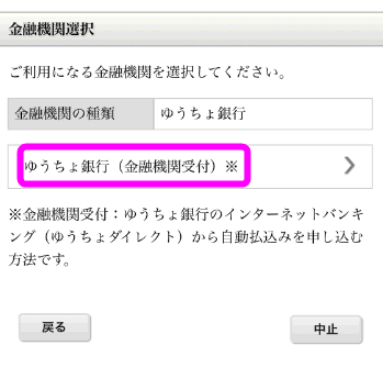 *申込み後、銀行のオンラインページが表示され、自動引き落としの手続きをする必要があります