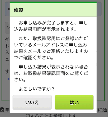 「申込内容の確認」をタップします。