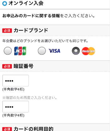 「JCB」「VISA」「MasterCard」の3つから選択できます。