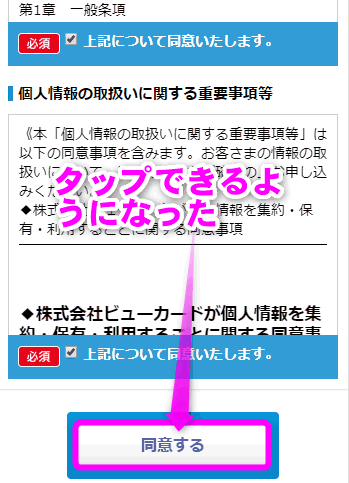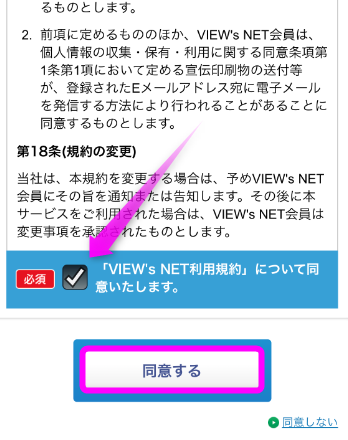 「VIEW's NET利用規約」に同意するにチェックを入れ、「同意する」をタップします。