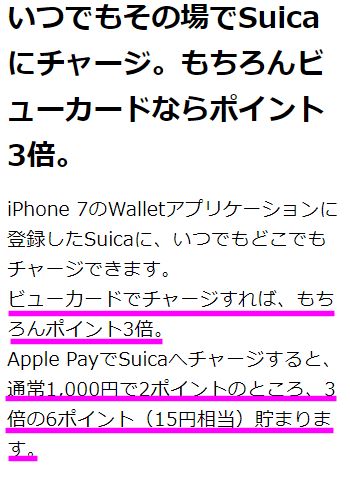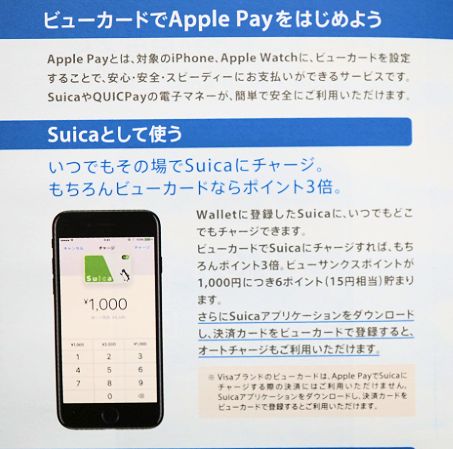Apple PayでSuicaを利用している人も多いかと思いますが、Viewカードを登録し、Suicaにチャージすると3倍のポイントが付きます。