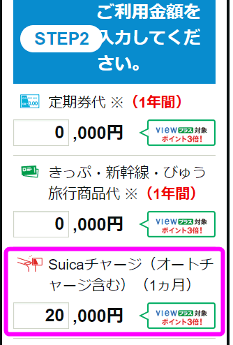 年会費477円をポイントで相殺させるには、1ヶ月3,000円以上をViewカードでチャージすればよいことになります。