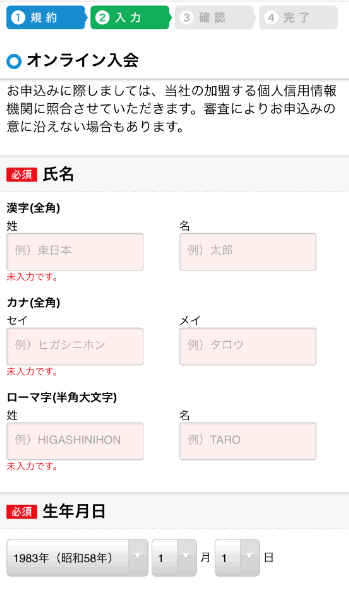 オンライン入会のページが表示されるので、下にスクロールします。
