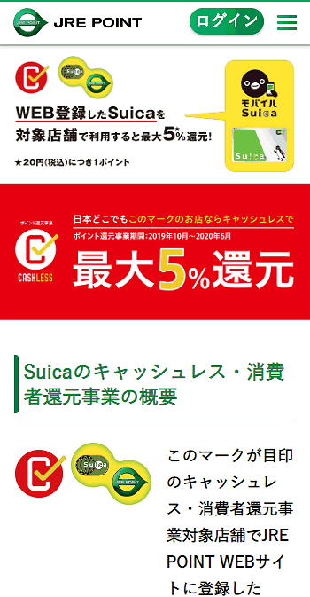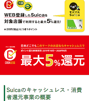 そこでこのページでは電子マネーの中でも最も普及率が高い、Suicaでポイント還元制度を利用する方法を紹介します。SuicaカードやiPhoneのApple Payに登録しているSuica、アンドロイドのモバイルSuicaなどを利用している方は、以下のように登録をしないとSuicaでいくら買い物をしても2、もしくは5%のポイント還元制度を了できないのでやり方を紹介したいと思います。