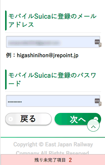 もし登録したメールアドレスとパスワードを入力しているのにエラーが出る場合は、「Suica識別ID」を入力してください。iPhoneのApple Payでは複数のSuicaを登録・発行できますが、2枚目以降は「Suica識別ID」がメールアドレスのあとに「_2」とか「_3」が付くようになります。