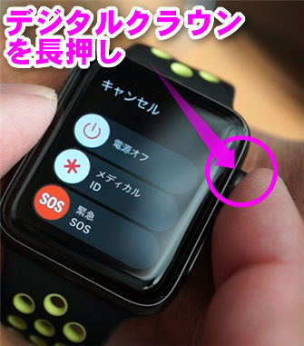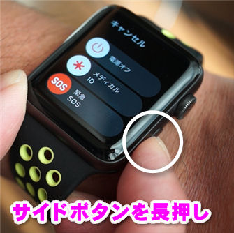 - 長押しするとApple Watchの電源のオン・オフ