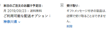 なお、ギフトメッセージを選択してもお届け予定日は変わりませんでした。