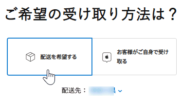 自宅に届けてほしかったので受け取り方法は「配送を希望する」を選択。