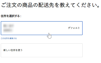 私の場合、すでにいろいろなものをオンラインショップで購入していたので住所が登録済みでした。