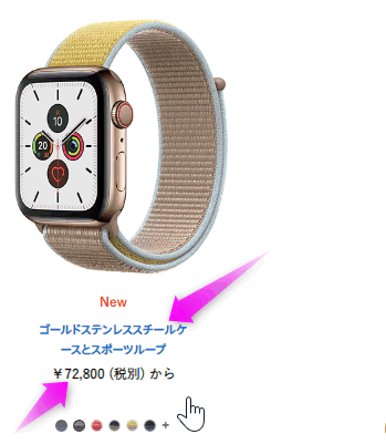AppleのオンラインストアのApple Watchのページを開きます。