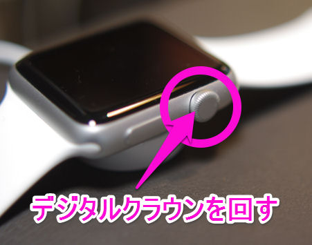「デジタルクラウン」と呼ばれる右側面にあるダイアルを回すと・・・