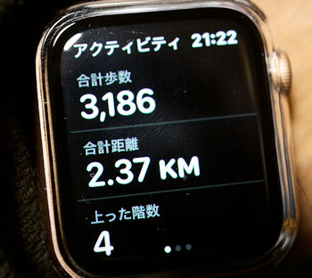 Apple Watchのフィットネスアプリを開くと、Apple Watchで記録した歩数、距離、ワークアウトなどの記録が表示されます。