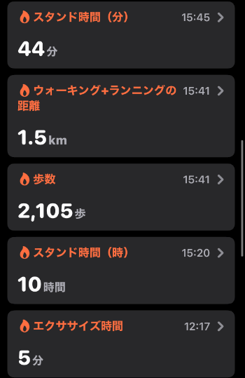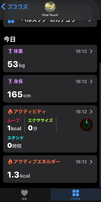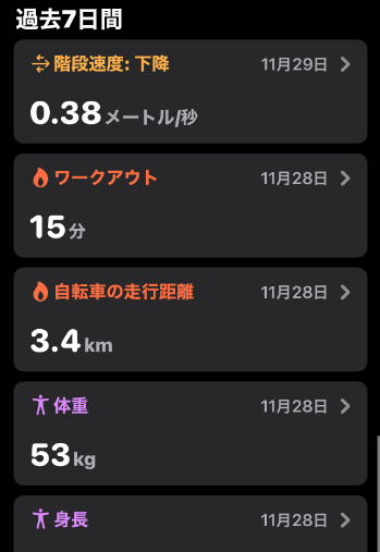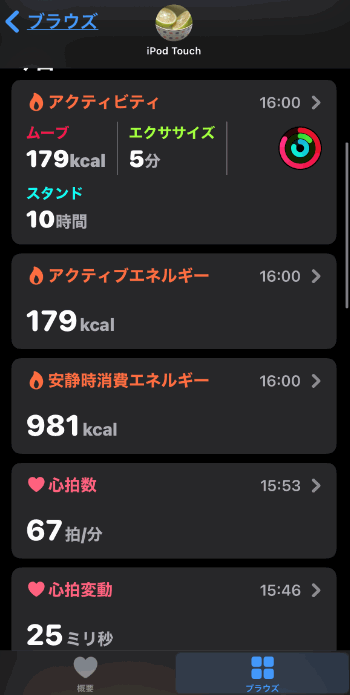 するとApple Watchで記録してきた様々なデータが表示されます。