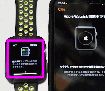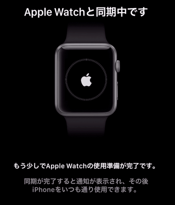 Apple Watchと同期中ですと表示されるので、しばらく待ちます。