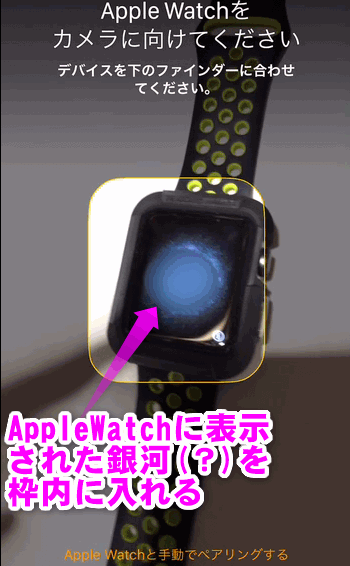 Apple Watch側で銀河のようなアニメーションが開始されます。