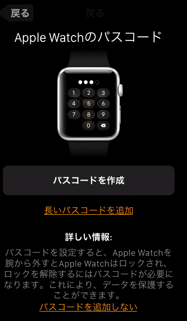 Apple Watchのパスコードを作成します。