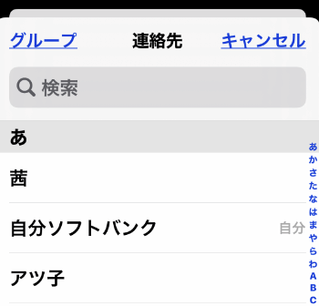 「連絡先」が開くので、自分の電話番号が保存されている連絡先をタップしてください。
