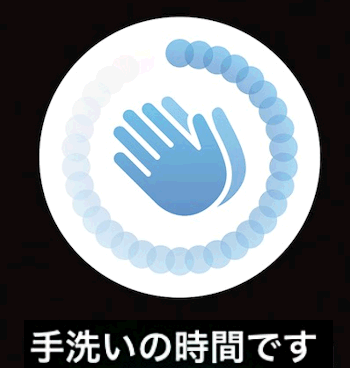 手を洗う動作(ごしごしこする動作)で手洗いと確定し、音とともに画面に表示される仕組みっぽい。つまり、水道の音が聞こえた時点でカウントダウンは開始されるものの、その後の手首の動きで手を洗っているかどうかを確認しているわけですね(多分)。