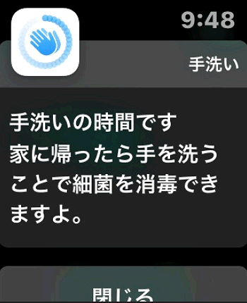 オンにしておくと、自宅に到着するとこのような「手洗いの時間です」という通知が表示されます。
