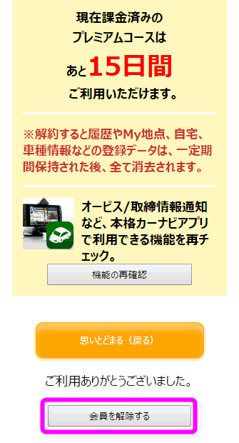続いてナビタイムの解約ページに行きます。