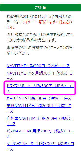 該当するナビタイムの契約をタップします。私の場合は、「ドライブサポーター」というやつですね。