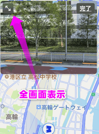 もう一度矢印のアイコンをタップすると、全画面を終了できます。