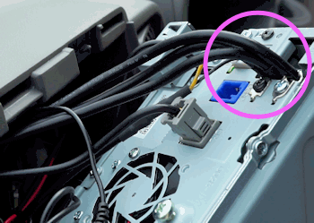 彩速ナビの裏側。3本のUSBケーブルが伸びています。このうちの1本のみ。