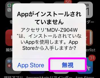 「Appがインストールされていません」と表示されますが、「無視」をタップしてかまいません。