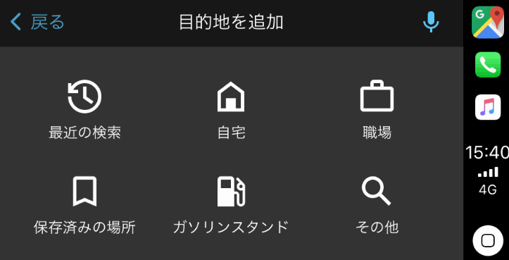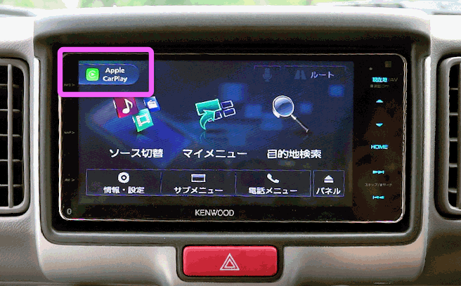 するとカーナビ側でこのようなCarPlayの画面が表示されます。