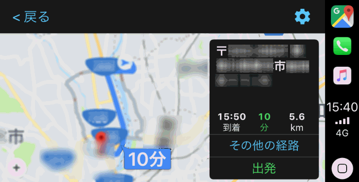 もちろんCarPlayでは地図アプリのナビを使うことも可能。ですが私は渋滞情報も正確なGoogleマップを使うことが多いです。