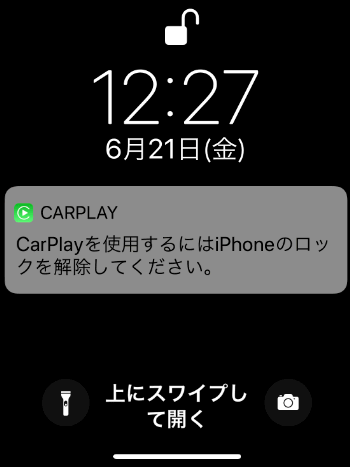 iPhoneと接続すると「CarPlayを使用するにはiPhoneのロックを解除してください」と表示されるのでロックを解除します。