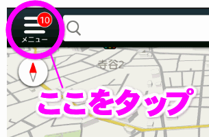 設定は左上の「メニュー」をタップします。