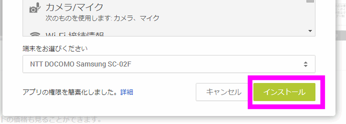 続いて、「インストール」をクリック。