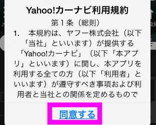 やはり初回だけ、利用規約が表示されるので、「同意する」をタップします。