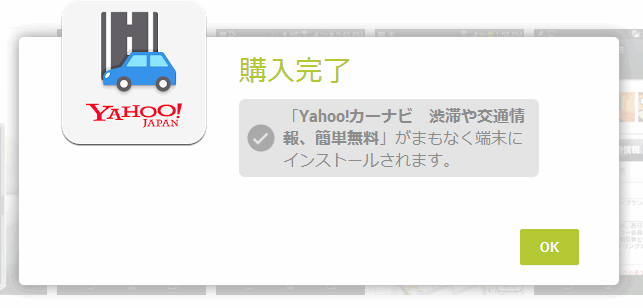 これで自動的にスマホやタブレットに「Yahoo!カーナビ」がインストールされます。