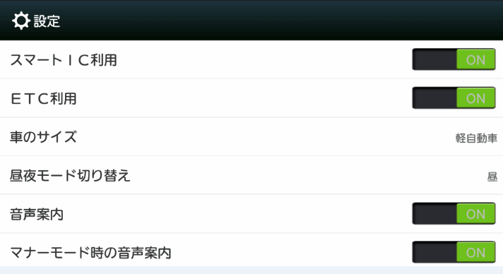 ナビを開始する前に、設定を見ていきます。