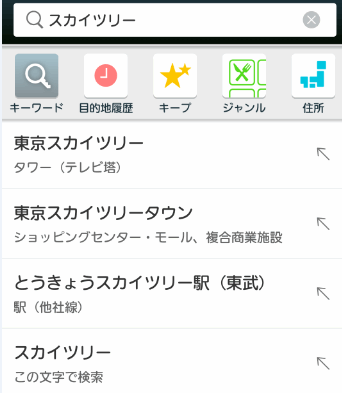 また、iOSのマップやgoogleマップのように、音声入力やキーワード入力による検索も可能。