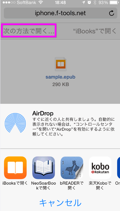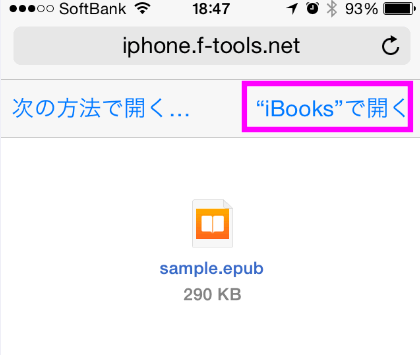 先ほどのURLにアクセスすると、「iBooksで開く」か「他のアプリで開く」か聞かれるので、「iBooksで開く」を選択してください。